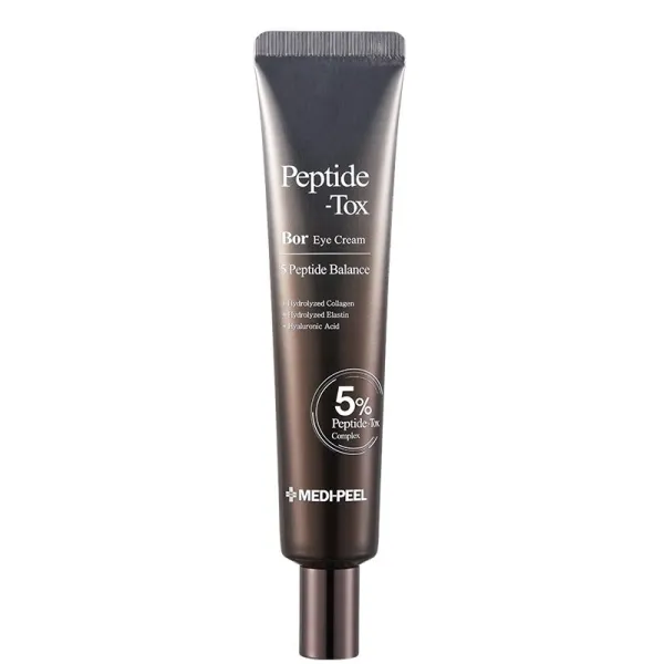 Medipeel Peptide-Tox Bor Eye Cream est une crème contour des yeux inspirée des effets du Botox, formulée pour raffermir, lisser et hydrater la zone délicate du regard. Grâce à l’Acetyl Hexapeptide-8, elle améliore l’élasticité et réduit visiblement les rides et ridules. Enrichie en collagène, elle maintient l’hydratation, renforce les tissus cutanés et aide à retendre la peau relâchée. Cette crème traite efficacement les poches, le relâchement et la déshydratation, redonnant au regard éclat et fermeté.