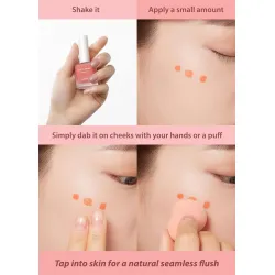- Fard à joues liquide juteux pour un éclat frais : Ce blush léger à base d’eau offre un éclat naturel en quelques gouttes. Facile à estomper au doigt ou avec des outils pour un teint frais qui dure.