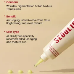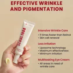 Déposez une petite quantité du bout des doigts et étalez délicatement sur le contour des yeux en tapotant légèrement pour une meilleure absorption. Grâce à la présence de rétinal (un dérivé de la vitamine A), utilisez-le le soir pour un résultat optimal. Si vous l'utilisez pendant la journée, appliquez toujours une protection solaire. Commencez par une petite quantité pour permettre à votre peau de s'adapter progressivement.
