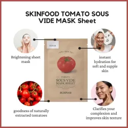 Masque en tissu Skinfood à la tomate cuite sous vide – Un coup d'éclat pour votre peau. Ce masque innovant de Skinfood, enrichi des bienfaits de la tomate, utilise la méthode sous vide pour extraire un maximum d'ingrédients nourrissants qui pénètrent en profondeur. Ce masque est la solution idéale pour illuminer le teint et lui donner un aspect sain et éclatant.