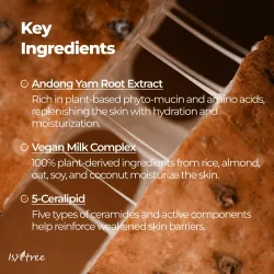 Cette crème hydratante est infusée à 57 % d'extrait de racine d'igname d'Andong pour hydrater la peau. Elle est enrichie en phytomucine végétale pour renforcer la barrière cutanée et en cinq céramides pour protéger et hydrater la peau. Sa formule vegan et non testée sur les animaux est cliniquement testée pour les irritations cutanées.