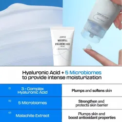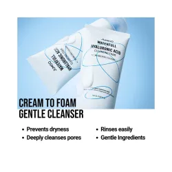 Ce nettoyant moussant coréen à l'acide hyaluronique triple complexe, dont l'hyaluronate de sodium, l'acide hyaluronique hydrolysé et l'hyaluronate de sodium acétylé, hydrate intensément la peau tout en la nettoyant.