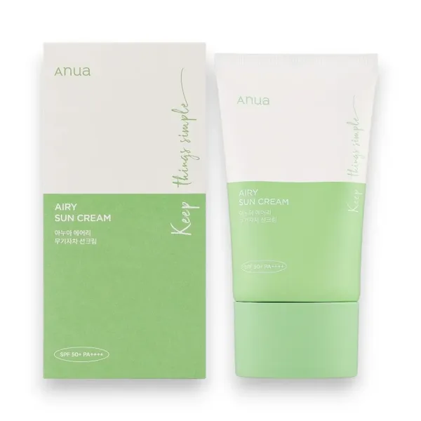 La Crème Solaire Aérienne ANUA SPF 50+ PA++++ est une protection solaire à large spectre conçue pour les peaux sensibles. Cette crème solaire physique utilise une technologie de dispersion de poudre pour créer une texture onctueuse et fraîche, sans effet blanchâtre et offrant un fini souple. Formulé avec de la Centella Asiatica, de l'Houttuynia Cordata, de l'Arbre à Thé et de l'Extrait d'Artemisia Capillaris, il apaise et protège en réduisant les rougeurs, les irritations et l'inconfort.