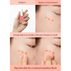 - Fard à joues liquide juteux pour un éclat frais : Ce blush léger à base d’eau offre un éclat naturel en quelques gouttes. Facile à estomper au doigt ou avec des outils pour un teint frais qui dure.