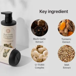 - Formulé à base d'extraits d'ail noir et de curcuma, il contribue à la résistance des cheveux et à la santé du cuir chevelu.