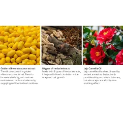 - Formulé à base d'huile de camélia de Jeju, apaisante pour le cuir chevelu et nourrissante, et de 8 extraits de plantes qui favorisent la circulation sanguine et la croissance des cheveux.
