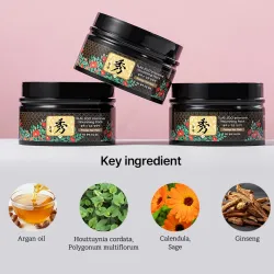 - Enrichi en huile de noyau d'argania spinosa, extrait de houttuynia cordata, extrait de calendula officinalis et extrait de racine de ginseng panax.