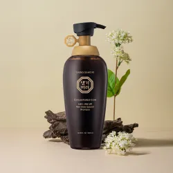 - Un mélange élaboré selon des recettes traditionnelles, incluant des extraits de racine de Rehmannia Glutinosa, de racine d'Acanthopanax Sessiliflorus et d'extrait de Nelumbo Nucifera, nourrit le cuir chevelu en profondeur et contribue à maintenir son élasticité.
