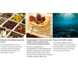 - Une forte concentration de collagène marin et d'acides aminés renforce l'élasticité et l'immunité du cuir chevelu.
