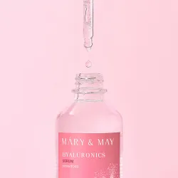 Sérum Hyaluronique Mary&May, contenant 6 formes d'acides hyaluroniques de poids moléculaires variables pour une réhydratation ultra-puissante, sans parfum. Ce sérum formulé avec de l'acide hyaluronique de petite taille pénètre entre les cellules et hydrate de l'intérieur. Il offre un puissant effet antibactérien qui stimule la régénération cutanée et améliore son élasticité. Sa composition en acide hyaluronique de haute taille retient l'hydratation à la surface de la peau et réduit l'évaporation, préservant ainsi l'hydratation.