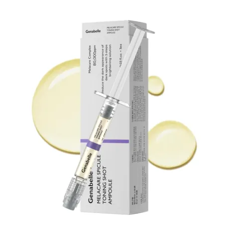 Présentée dans une seringue élégante, cette ampoule tonifiante cible les taches brunes et les imperfections grâce au complexe Melacare exclusif de Genabelle, qui contient des ingrédients performants comme la niacinamide et l'acide tranexamique. Les micro-spicules de sa formule optimisent l'absorption des actifs et leur efficacité. Ce coffret contient trois ampoules. Convient aux peaux sèches et sensibles.