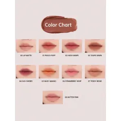 Mode d'emploi : Appliquez une couche uniforme sur les lèvres préalablement exfoliées et hydratées. Laissez sécher quelques instants pour un fini mat parfait.