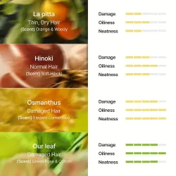 Parfum relaxant Hinoki – apporte une odeur boisée et apaisante sur les cheveux.