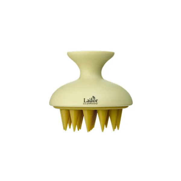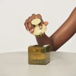 Prends la brosse et effectue de petits mouvements circulaires sur le cuir chevelu pendant 3–5 minutes pour masser et faire mousser.