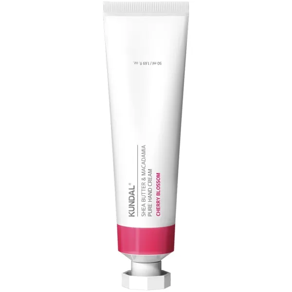 Offrez à vos mains le soin qu'elles méritent avec la crème pour les mains Shea Butter & Macadamia Pure Hand Cream Cherry Blossom 50ml de la marque Kundal.