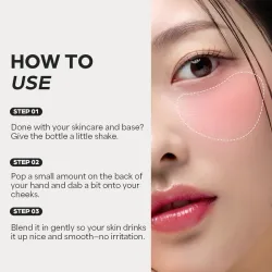 Mode d'emploi : Appliquez une petite quantité de produit sur les pommettes et estompez délicatement avec les doigts ou un pinceau pour un effet naturel. Ajoutez une touche de couleur supplémentaire si nécessaire.