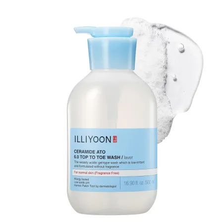 Découvrez le Ceramide Ato 6.0 Top To Toe Wash 500ml de la marque ILLIYOON, un produit idéal pour prendre soin de votre peau de la tête aux pieds.