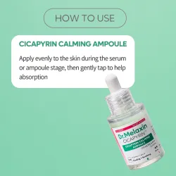 Mode d'emploi : Appliquer quelques gouttes de Cicapyrin Calming Ampoule sur une peau propre et sèche, matin et soir, en tapotant doucement jusqu'à absorption complète. Suivre avec votre crème hydratante habituelle.