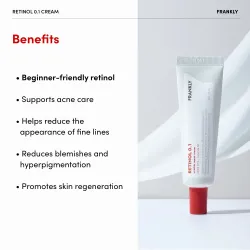 Retinol 0.1 Cream 30ml de la marque FRANKLY est un traitement anti-âge puissant qui aide à réduire l'apparence des rides et des ridules, tout en améliorant la texture et la fermeté de la peau. Ce produit contient une concentration élevée de rétinol, un ingrédient reconnu pour ses propriétés régénérantes et anti-âge.